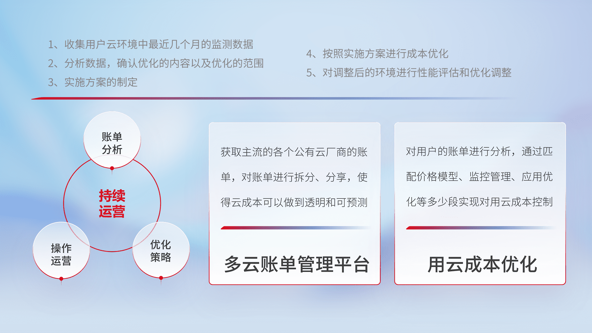 监控业务系统资源开销,,对资源的消耗精确计量,,,,实现费用的透明化管理,,不断提升资源使用率,,调整资源购买方式,,,,降低资源费用成本,,,,用云成本可预测、、用云费用可优化,,云资源配额有据可依。。。。