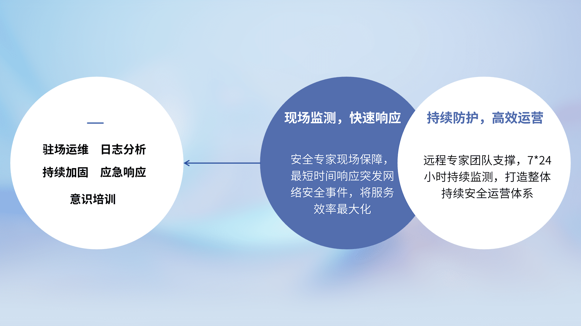 针对客户行业特性,,提供专属的一站式安全管理服务,,,,帮助客户全面感知网络空间威胁,,通过安全专家的线上、、线下防护支持,,,实现风险闭环,,,,将安全保障常态化,,为客户打造常态化安全运维运营服务。。。